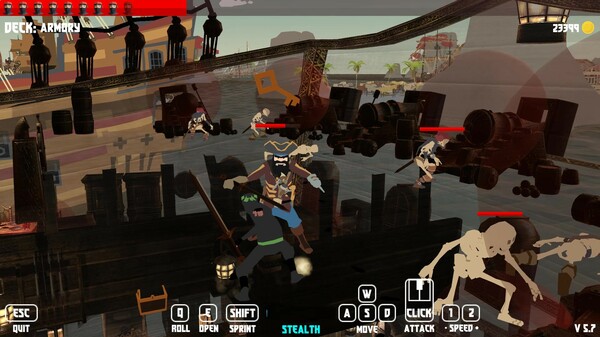 Ahoy, matey! Join the ranks of a stealthy ninja, skulking through the shadows of a haunted pirate ship to reclaim the esteemed Princess Polly and her royal kin from the clutches of Captain Pegleg and his peculiar crew—part undead, part lively dancing pirates and squawking parrots!