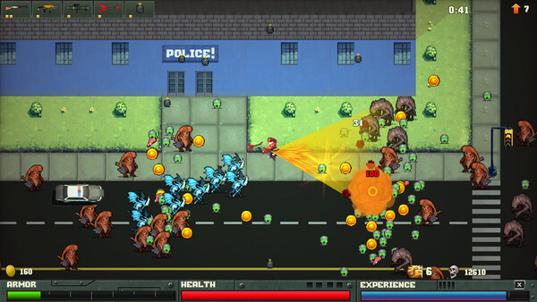 Blast hordes of alien ships into junk. Collect the scrap to upgrade your ship into an unstoppable force of destruction. Unlock new characters and weapons and upgrade your stats between runs.