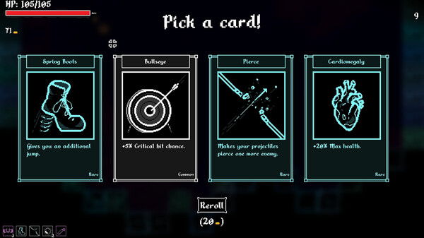 Drawn into your PC by an antivirus, control a multi barrel tank in this Action Roguelike, 2D Shooter. Defeat motherboard viruses to unlock new zones. The 'UPGRADE MACHINE' grants enhancements every 1-10 seconds. Use points to add upgrades in this Arcade, Top-Down Adventure.
