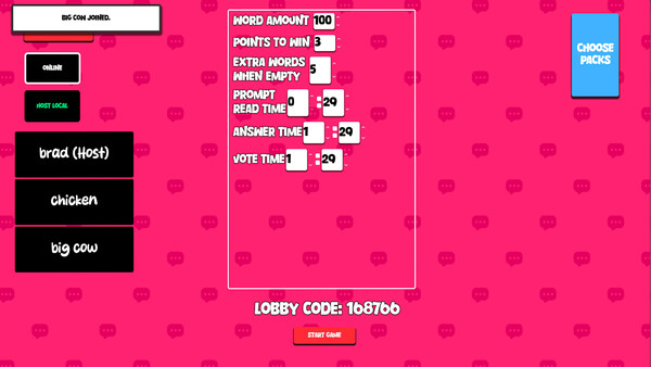 Roops Ransom is About Putting Together a Set of Random Words into Funny, Bizzare, or possibly unhinged Responses to a question. Fight your Friends to see who is the Most Creative. Customize Every Aspect of your game by creating Your Own Word and Prompt Packs, and Share them onine for Infinite Games.