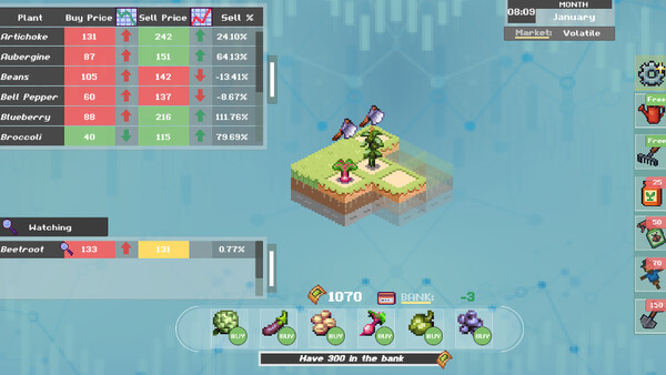 Grow crops, unlock upgrades, and outsmart a crashing market in this strategic farming sim. Defend your plots from threats and perfectly time your buying, selling, and harvests to stay profitable.