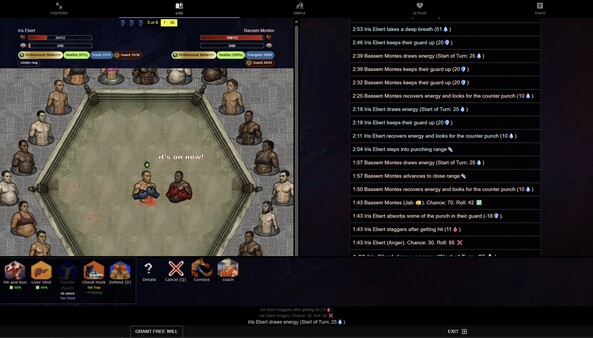 A tactical turn-based boxing simulation with (optional auto-battle) and perma-death. From your backyard to a world title. Recruit Boxers, Assign Perks, Train Stats, Build Synergies, Manage Injuries, Unlock strategies, Upgrade your Gym, Bribe the Commission and create roster of Boxing Champions.