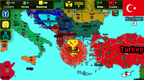 New edition of the ultrarealistic simulator of today's world where you play as the head of state or as the opposition! Major developments: the war in the Ukraine and all of its consequences, conspiracy theories, fake news, interference by secret services, animal welfare and climate objectives.
