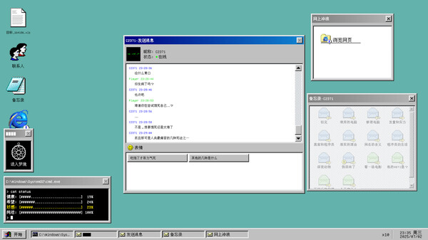 A text adventure game in first-person perspective, with the protagonist being male. You need to uncover the truth by having conversations with various cute girls. Trigger different events through options and finally choose the ending that suits you.