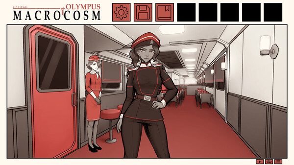 "Macrocosm 2772 G.E.: Olympus" is a role-playing visual novel featuring a character statistics system that depends on the choices made by players.