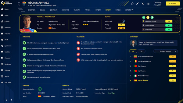 Velo Victory is a new cycling management simulation PC game. Build your legacy through scouting, transfers, facilities, staff, and tactics. Shape future champions, meet sponsor goals and lead your team to victory.
