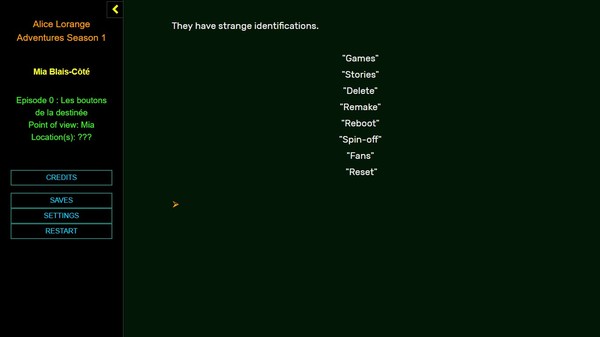 “Alice Lorange Adventures Season 1” is an episodic semi-linear story made in Twine, staring an autistic teenager. After a difficult day at school, and a demented nightmare, Alice Lorange finds herself in a strange house. Will she be able to return to Earth?
