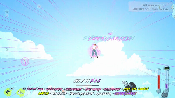 Fast paced, arcade-like, 90’s inspired action packed fun! Play as a passenger on board a doomed flight stuck in a twisted time loop in the year 1995. Explore a wild time-bending narrative while stacking up trick combos, collecting items, earning coins, upgrading abilities and dodging debris!