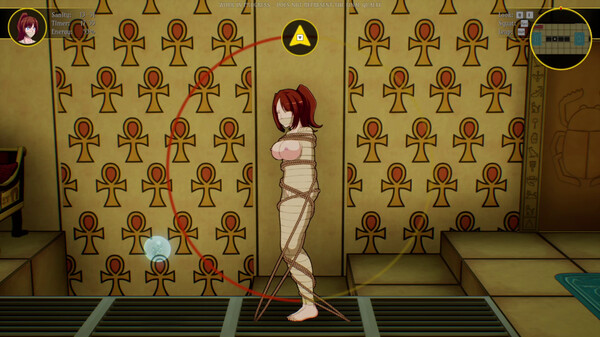 A BDSM-themed stealth/puzzle adventure where you control a treasure hunter named Yui who has been captured and restrained after attempting to rob a long lost Egyptian tomb. Help Yui solve puzzles, avoid the Pharaoh and her lackeys, and try to escape the tomb... All while completely Wrapped Up!