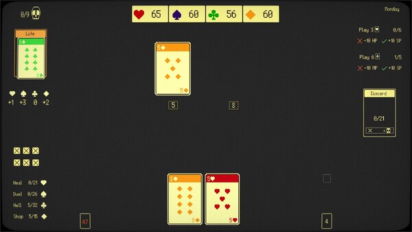 This is existential math with a deck of cards. Monday to Friday, you're playing cards against Death itself. Higher card wins, but every choice costs something. Keep four stats above zero while Death keeps dealing. Some weeks are brutal. Some hands are perfect. Most are just Tuesday.