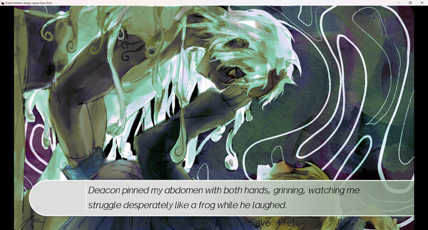 - Cannibalism X superpowers X Suspense X Original worldview - "Fried Chicken Wings Cause a Love Fire" is a BL mystery comedy long visual novel. It uses the first-person perspective with a fixed protagonist, Aris; contains elements of horror and sexual innuendo.