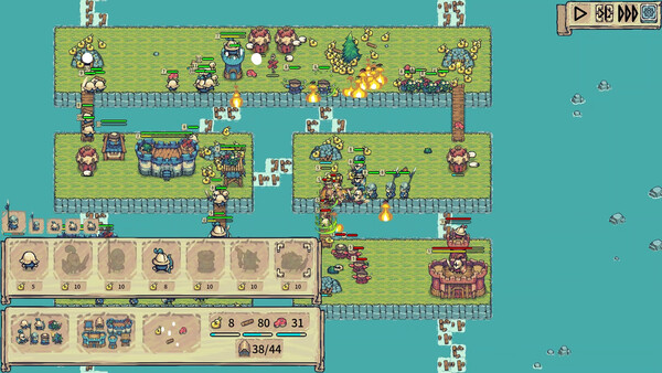 RTS, but the soldiers will act automatically: Each soldier has different characteristics/attribute values/action methods. Choose the appropriate soldiers and buildings according to the battlefield situation, and destroy the opponent's castle only through your strategy rather than operation!