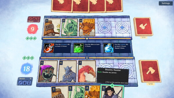 Causa, Voices of the Dusk is an intriguing turn-based strategy card game with innovative game mechanics. Sacrifice cards to raise your Cause, and bring them back later for unexpected powerful plays. Prove your abilities in battle and draft your way to Victory in extremely challenging campaigns.
