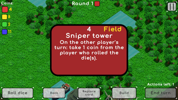 Build your city, roll the dice, and outplay your rivals in Diceville — a card-based strategy game inspired by tabletop classics. Trigger building effects, upgrade your HQ, and race to victory in a game of luck, planning, and clever combos.
