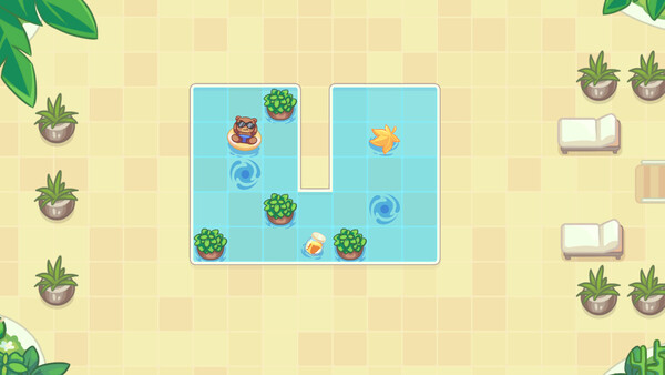 Poolar Bear is a minimalist slide-until-wall puzzle game with 100 levels. Guide a curious bear through calm pools filled with whirlpool portals, bouncing plants, gusting fans, and lurking dangers like sharks and piranhas. Simple arrow-key controls meet cozy design for a relaxing yet brain-teasing adventure.