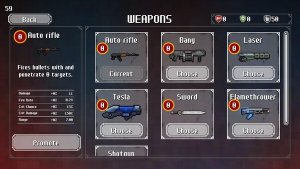 This is a pixel, casual game with elements of a simplified roguelike, in the genre of survival in hordes, for which you need to use bullet hell. Defeat hordes of mutant monsters. Earn solar coins for which you will pump the blessings of the Ludovischi. To defeat everyone who will stand in your way.