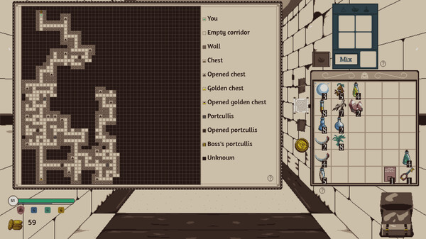 Gather together troops and weapons to fight through increasingly difficult armies in this medieval fantasy grid-based deck-building game. Establish synergies between your cards and treasures to create the strongest army!