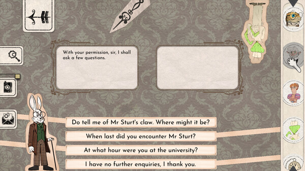 A cozy detective story for those who love deduction but hate murders. Gather clues, work in your journal, and question quirky witnesses! You need to come up with a theory of what happened and be able to prove it.