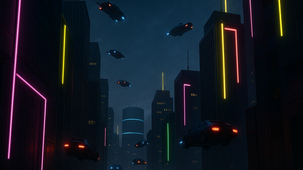 A free-roam 80s future racing game that feels like a mix of Need for Speed Underground 2, Burnout 3, Crazy Taxi, and Pod Racing in a synth jam.
