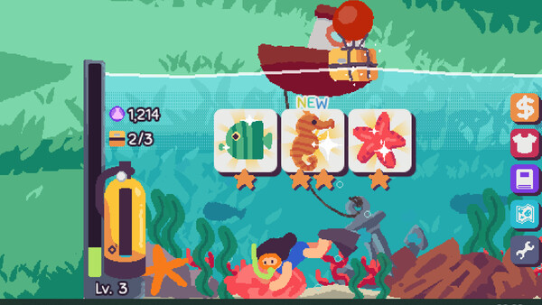 Watch a tiny diver explore the ocean in the corner of your screen. Collect sea creatures, upgrade equipment, and unlock new diving spots.