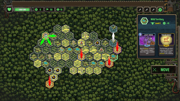 This roguelite deckbuilder is set in the American West. Battle monsters, cultists, and folkloric creatures while searching for gold and the source of the evil within a mine. You choose when to leave, not where to go. Will you play it safe returning to the surface, or risk it all by going deeper?