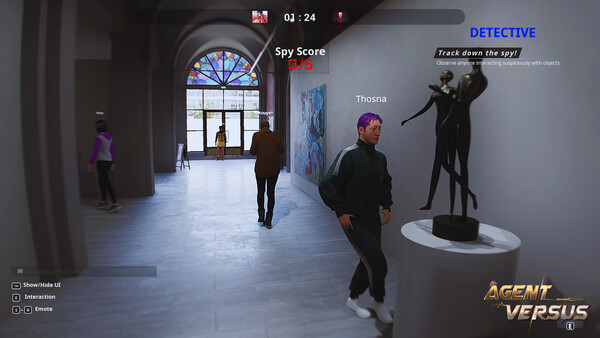 An online party game of deception for 2–8 players! Step into special Agent roles one side on a mission, the other out to stop them. Sharpen your stealth to blend into the crowd, and use your eagle eyes to spot the impostors. The showdown begins in 🕵️AGENT VERSUS.🕵️