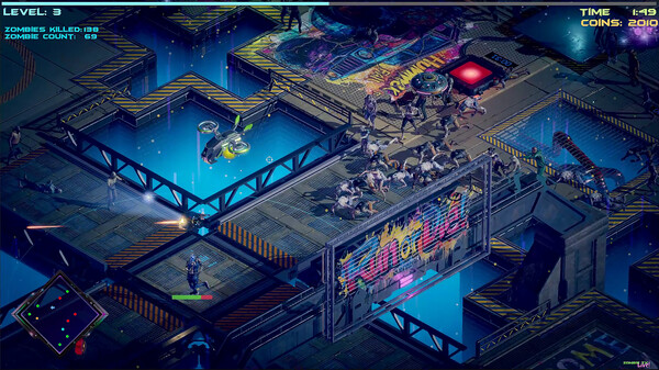Fight through a neon cyberpunk city action in this fast-paced top-down action game! Hack, upgrade, and battle high-tech enemies with a stylish cartoon look and an electrifying synthwave soundtrack.Indie game shooter top down cyberpunk.