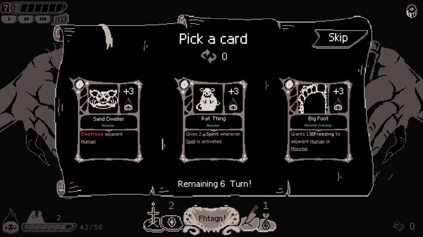 Fhtagn Simulator is a Cthulhu Roulette Deckbuilder. Set up card slots on roulette to maximize card's value. Collect evil creatures, spells, items and environment to build your deck. Your ultimate mission is to sacrifice spirit collected by cards to unseal the ancient gods that have come to earth!