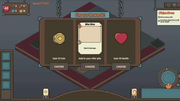 Command a castle on the back of a dinosaur across an endless, grid-based, procedurally generated world in this tactical roguelike deckbuilder. Rescue harbingers to build a unique deck, manage coins strategically to play cards and unlock skill trees to power up. Destroy corrupted creatures!