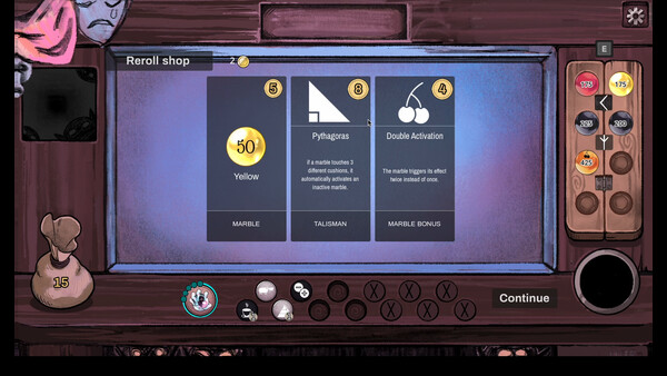Carnaval Marbles is a tactical roguelike inspired by French billiards. Combine magical talismans and marble bonuses to bend the rules, create explosive synergies, and push your score to its limit.