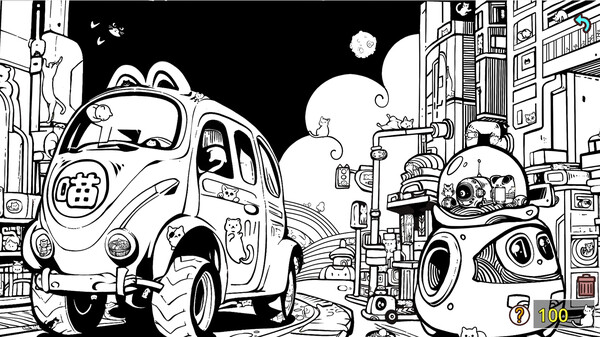 100 hidden cats is a hidden object game in the city setting. Black and white hand-drawn graphics in a cartoon style. Ultra hard! Really very difficult!