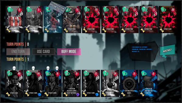 A fast-paced single-player card battler with tactical choices, quick rounds, and upgradeable cards. Build your deck and outsmart the city’s crime lords.