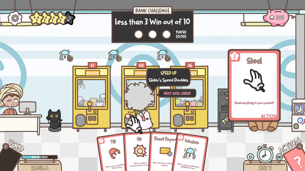 Prize Denied! Manage a claw machine arcade in this cozy management sim. Build challenging claw machines and play surprising cards to stop players from getting a prize! Earn money to unlock new arcades, collect cards, upgrade machines, and become the best arcade in the...UNIVERSE!