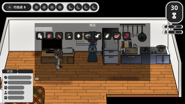Kudos is a turn-based game that puts you in control of a single character and manages their life from age 20 to 30. You get to pick their friends, their job, and how they spend their free time, but there is a catch! You can only choose to do one thing each day, or two at the weekends.