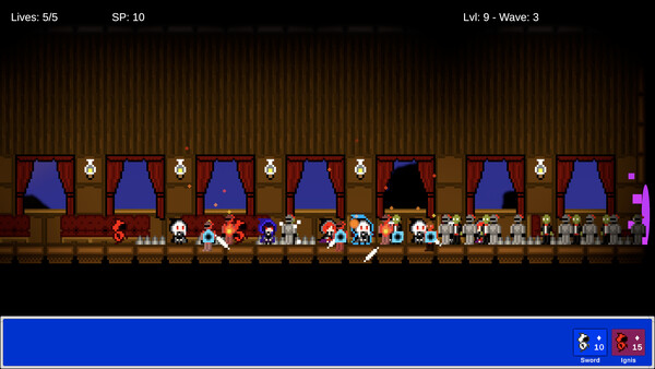 A real-time strategy simulation set in a medieval fantasy world where you can summon warriors and heroes to fight. 2D side-scrolling pixel game