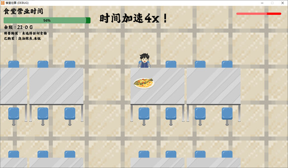 "Past in DinningHall" is a 2D RPG where players, as students, navigate a Chinese school cafeteria's busy environment to compete for food. The goal is to not only endure until semester's end but also to manage health during cafeteria hours for a balanced diet.