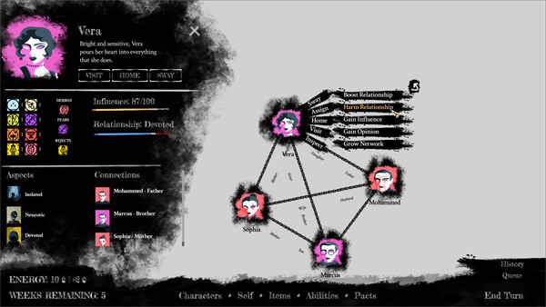 Set in the world of Cultist Simulator, haunt mortals and escape divine punishment in this unique relationship and resource management game. Strike Faustian pacts, manipulate mortals, and forsake your immortal life. Developed by Common Logic via Weather Factory's Sixth History License.