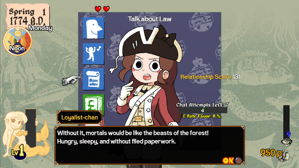 Manage a merchant ship during the American Revolution. Smuggle cargo and deliver secret packages for either the Patriots or the British Empire. Date a state!
