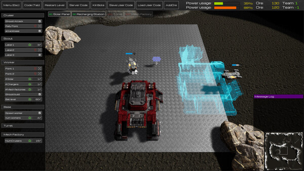 A classic RTS with a major twist. Your units are fully autonomous drones. Every unit runs code which you design using an intuitive visual coding interface. Automate everything from mining, to combat, even unit production.