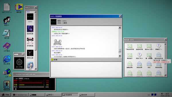 A text adventure game in first-person perspective, with the protagonist being male. You need to uncover the truth by having conversations with various cute girls. Trigger different events through options and finally choose the ending that suits you.