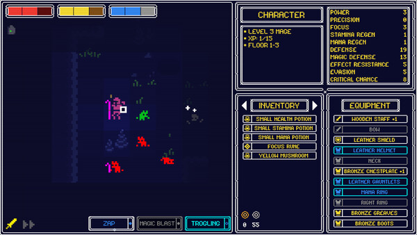 Many came before, many failed. Copies of previous players are still scattered throughout the dungeon! Thirty-five floors of unforgiving turn based combat with unique spells and weapons. Explore, craft, learn spells and much more on your journey to the top! Will you stay safe?
