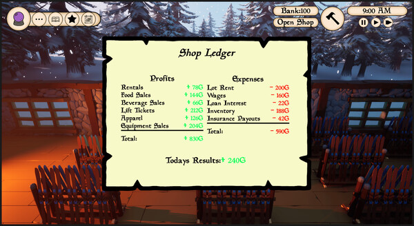 Run your own fantasy ski shop in the frosty peaks of Winterreach. Stock magical gear, serve a variety of races, hire and manage staff, research upgrades, and adapt to festivals, shortages, and the shifting demands of a living, lore-rich world.