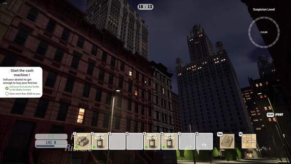 Manage your own speakeasy during the Prohibition. Produce illegal alcohol, customize your bar, satisfy demanding customers, and smuggle booze to the mafia, all while avoiding police patrols in this Prohibition-era simulator.