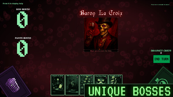 A grim after-death workplace deckbuilder/puzzle CCG about crafting the right deck to kill gods. Expect to lose, learn, and revise your mistakes - just like any other job.