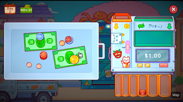 Run your kawaii vending machine company! A relaxing sim where you run your own vending machine company across a charming Japanese city. Pick neighborhoods, stock up on snacks, and set the perfect price. Upgrade your machines and keep them stocked, one soda at a time!
