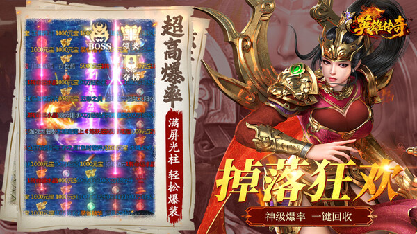 怀旧复古原汁原味传奇端游,三职一体,战亦是法道!以升级、爆装、攻沙的传奇玩法为核心,复古高爆良心激情打宝,激战BOSS,爆率全开满屏光柱。还增加了三国阵营等全新玩法内容,带来不一样的新奇体验!
