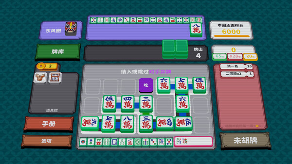 A single-player card game adapted from the Chinese National Standard Mahjong, focusing on diverse winning hands and scoring with Faan combinations. Meld the tiles horizontally and vertically and utilize items of rule variations. Experience mahjong within an intricately interwoven tile space.