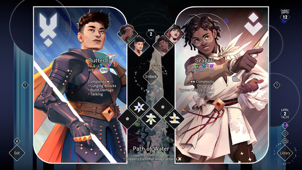 Coordinate two heroes in this story-rich tactics roguelike. Set up combos with your reliable Action cards, execute masterstrokes by drawing the right Gambit cards, and blast monsters off cliffs. Chase salvation with cloth and steel. Chart the path through a shattered dream.