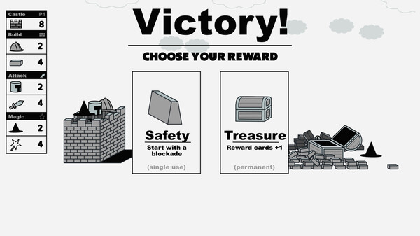 A stylish single player 1v1 card game funded and supported by Slay the Spire's Casey Yano and inspired by browser classic Castle Wars. Build up your castle and knock down your opponent's brick by brick!