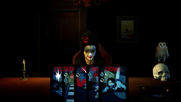 Dare to play a roguelike deckbuilder card game with the Madam? Find out about the thief girl who brakes into the wrong manor. Experience her horror story: hiding from killers, crawling, evading attacks, stealing valuable items and… hopefully getting out alive. She, and you as well.